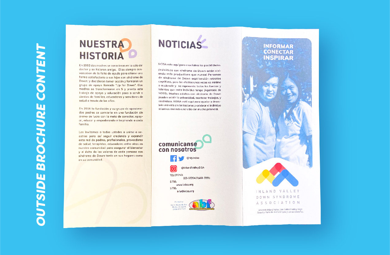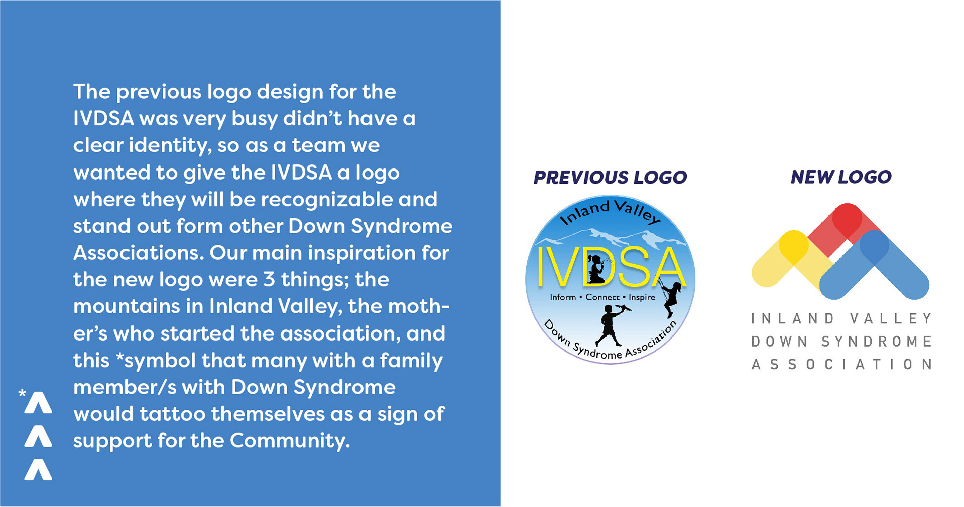 Collaborated with a team of designers for the annual AIGA CPP 24 Hour Design-a-thon to redesign a logo and branding for a non-profit called Inland Valley Down Syndrome Association (IVDSA).